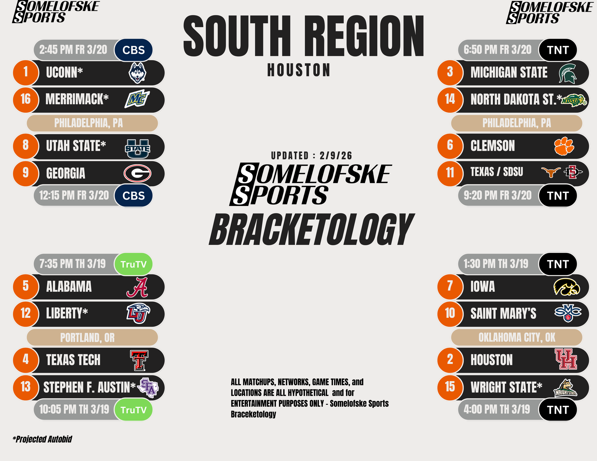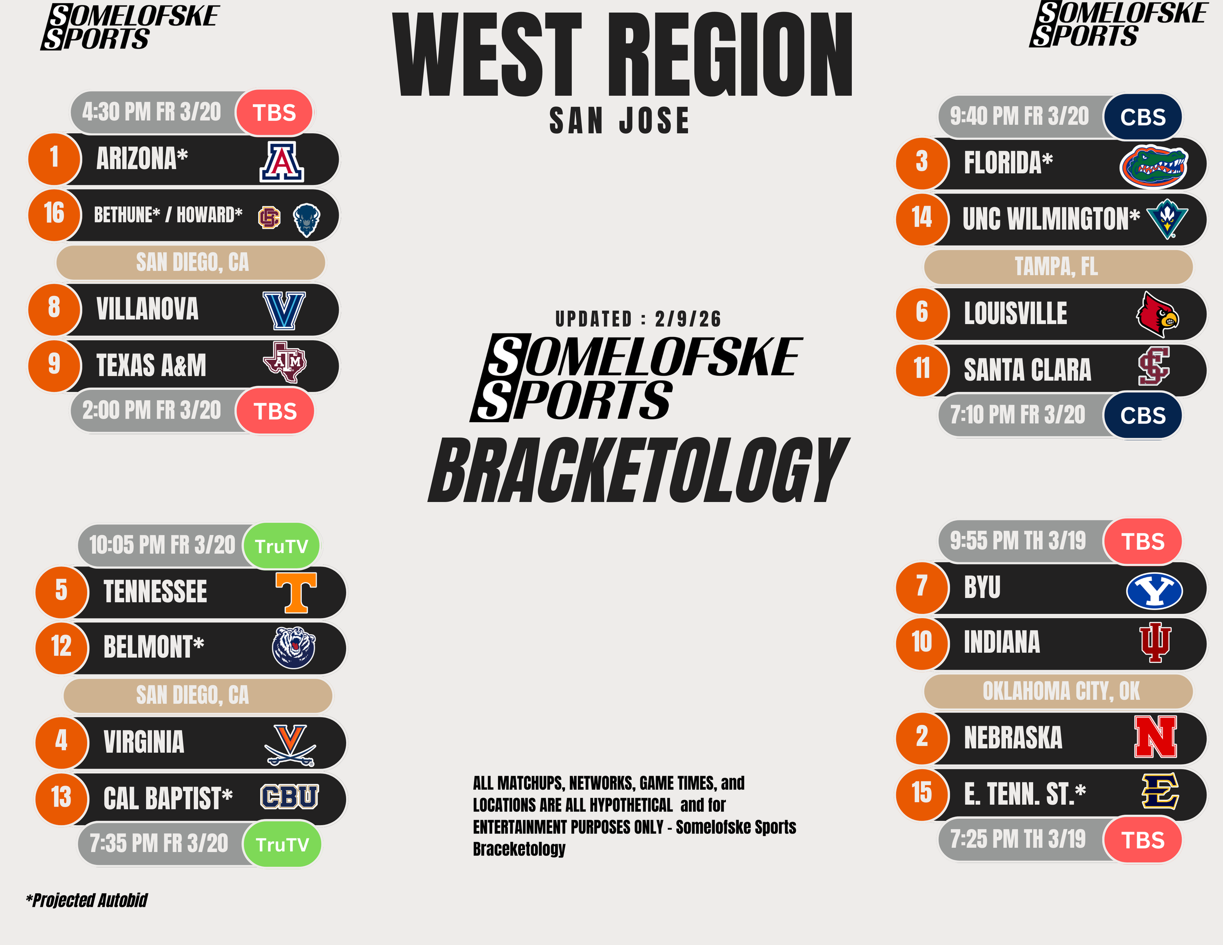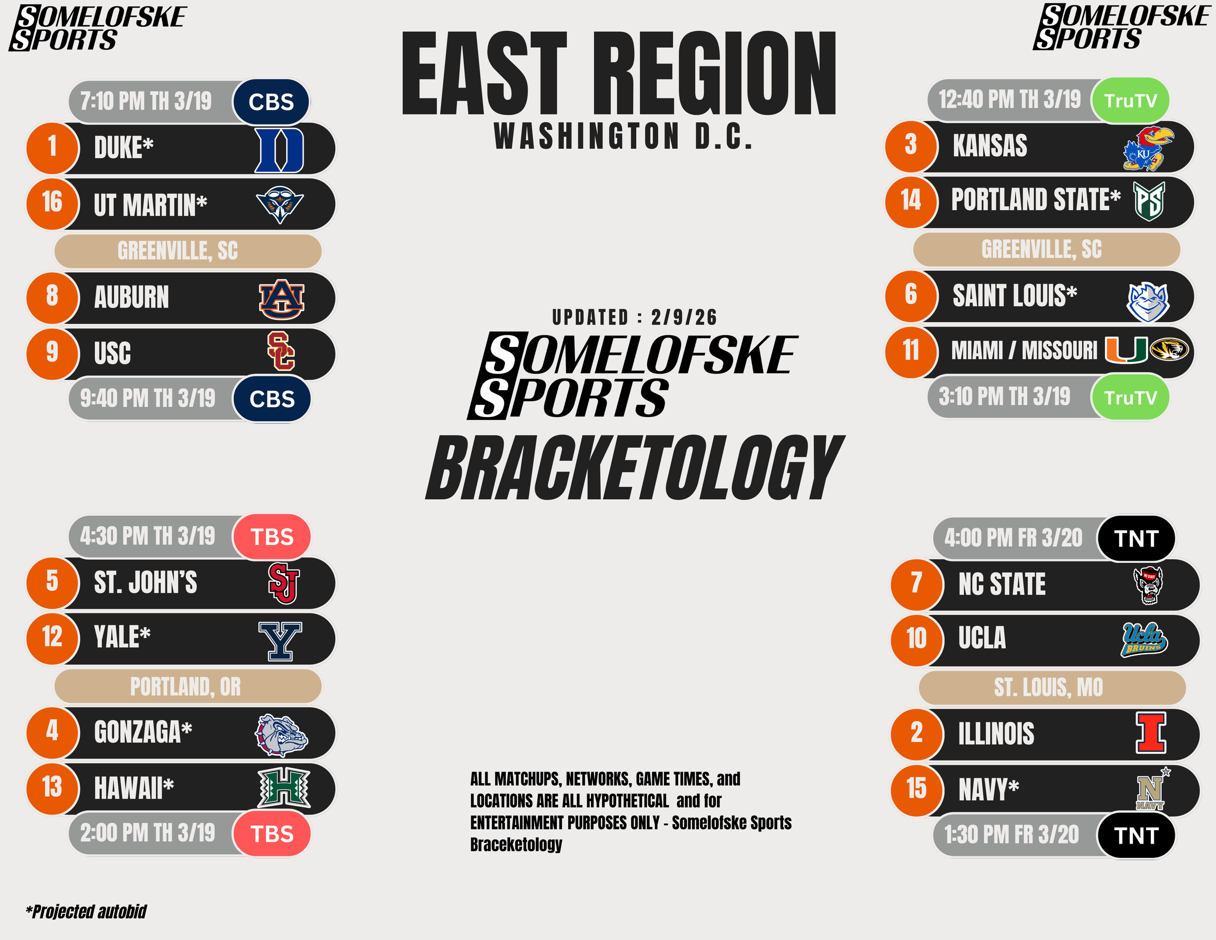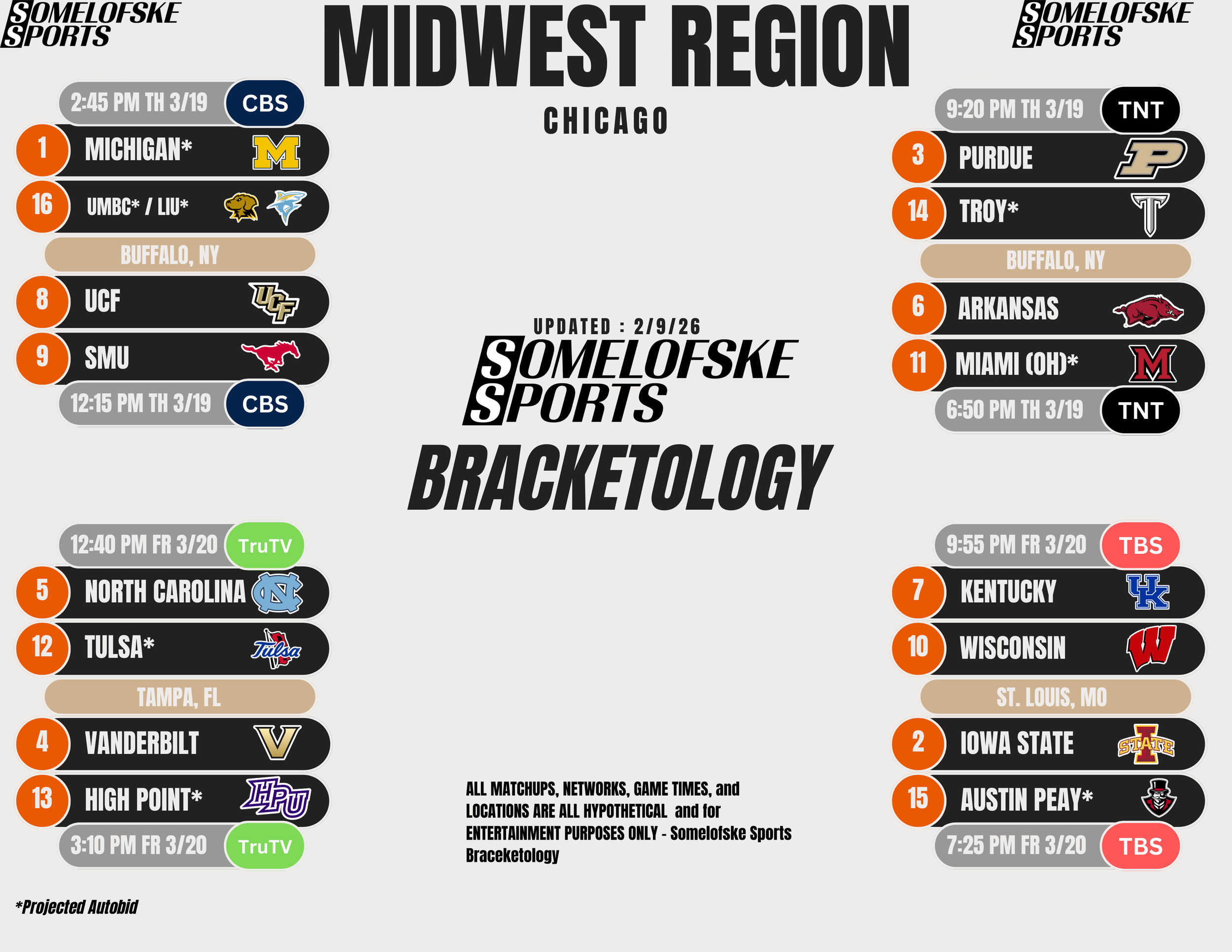 *Check out http://bracketmatrix.com/ for other bracketologists and the community consensus Previous Editions: Pre-season: 11/3/25 11/10/25 11/17/25 11/24/25 12/1/25 12/8/25 12/15/25 12/30/25 1/5/26 1/12/26 1/16/26 1/22/26 1/27/26 1/30/26 2/2/26 2/6/26