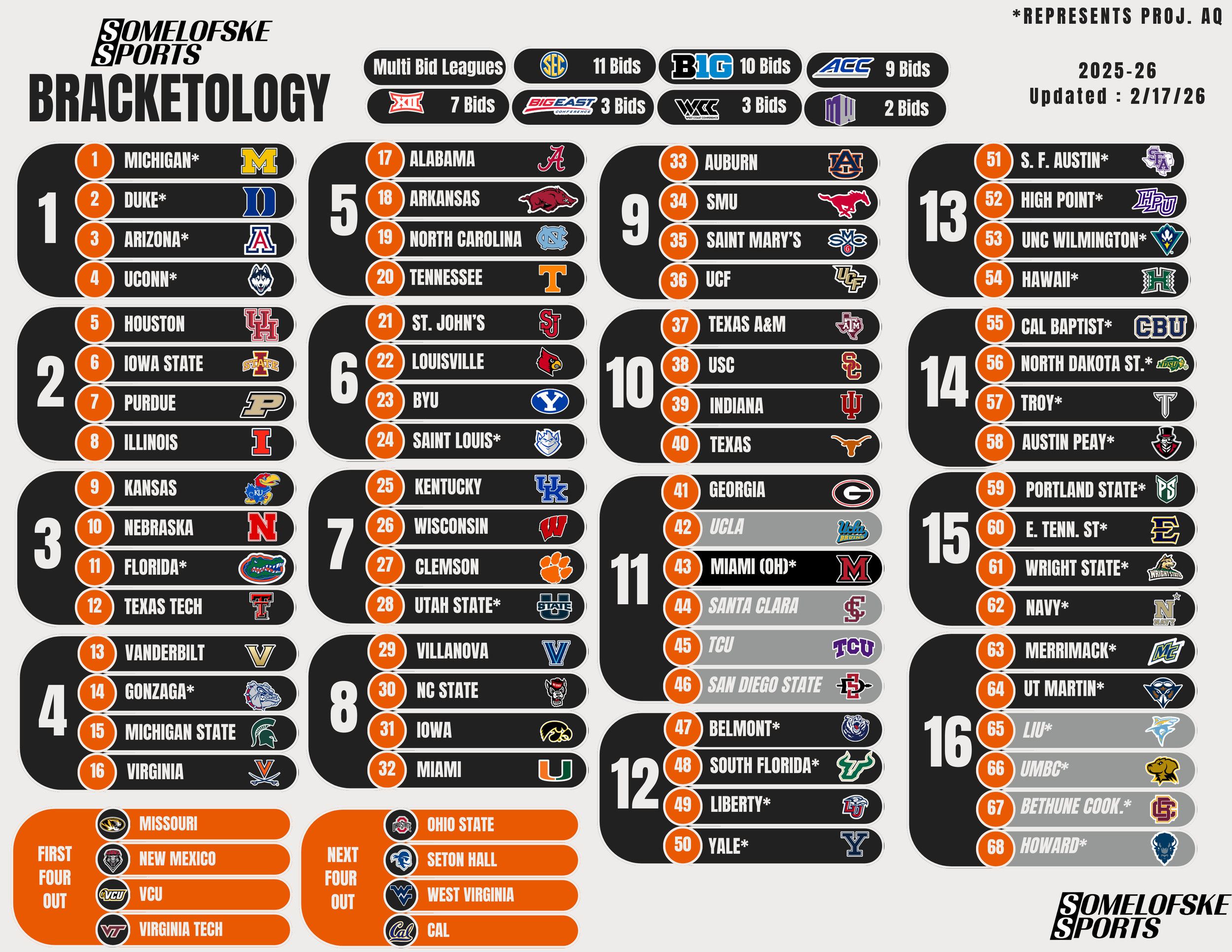 *Check out http://bracketmatrix.com/ for other bracketologists and the community consensusPrevious Editions: